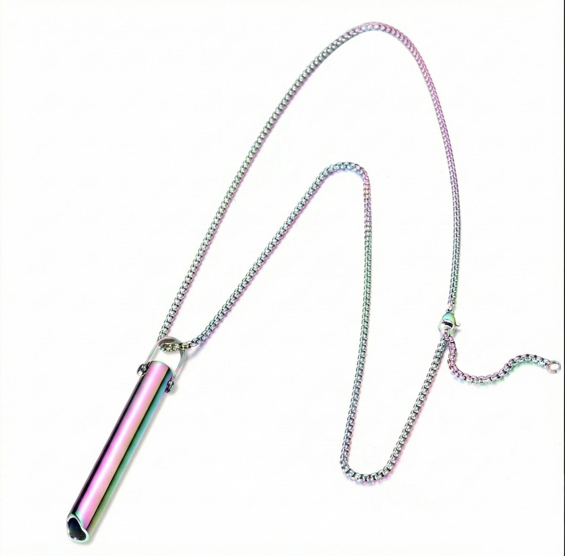 🌬️ Hack Your Biology By exhaling through the pendant, you are forced to extend your exhale to 8-10 seconds. This simple act triggers the Vagus Nerve, switching your body from "Fight or Flight" to "Rest and Digest."