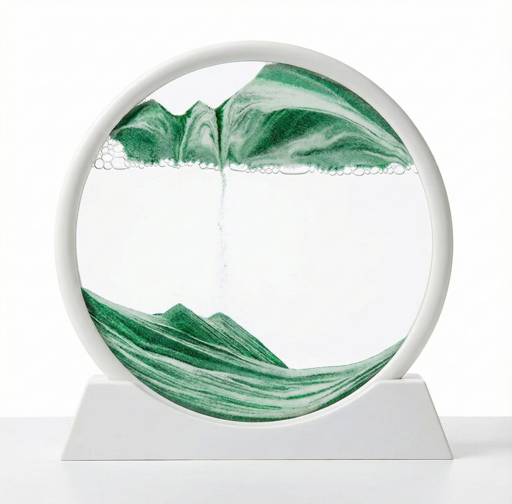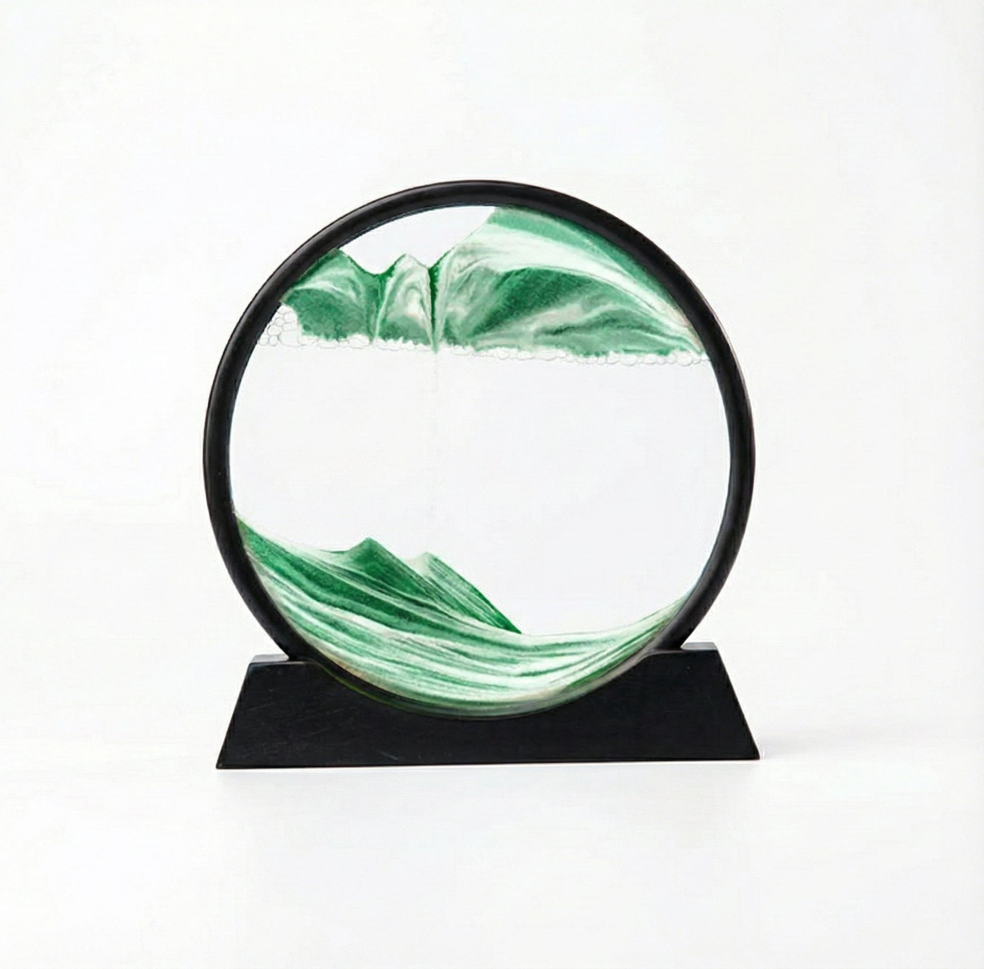 In a world of fast-paced scrolling, the Elemental Sandscape invites you to pause. It is a piece of kinetic art that creates a new, unique landscape every time you turn it.